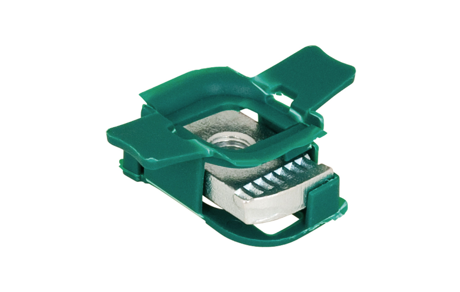 mit Fixierhilfe für alle Strut-Schienentypen zur festen Verbindung von Zubehörteilen an Schienen, Fixierhilfe für einfaches Versetzen und Positionieren, Flügel aus Polypropylen, grün, erfüllt die Brandschutzanforderungen der MLAR/LAR/RbALei