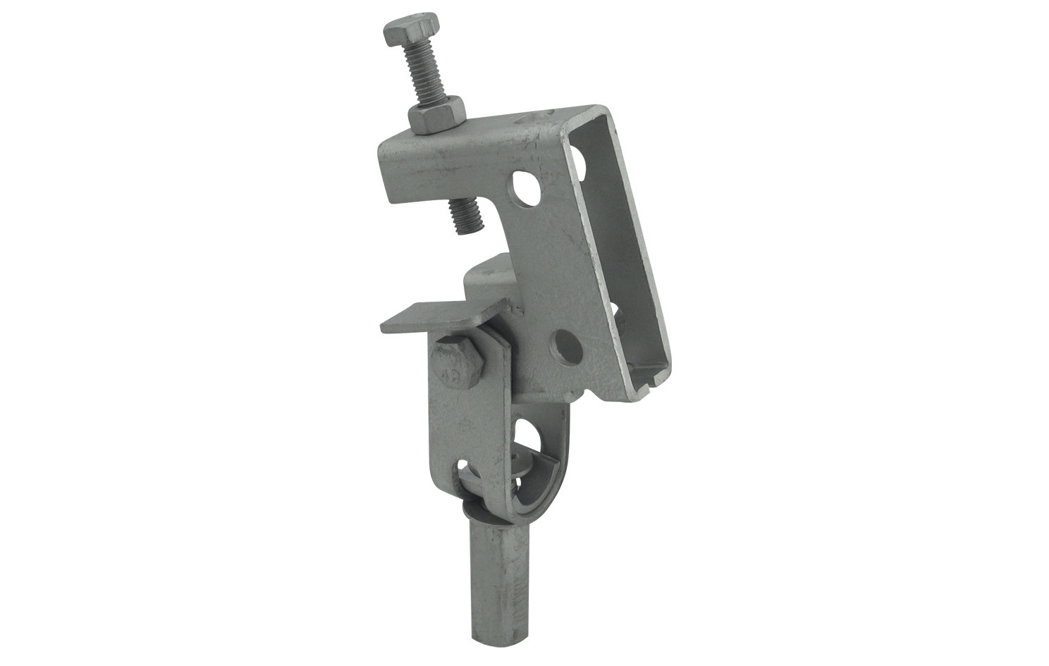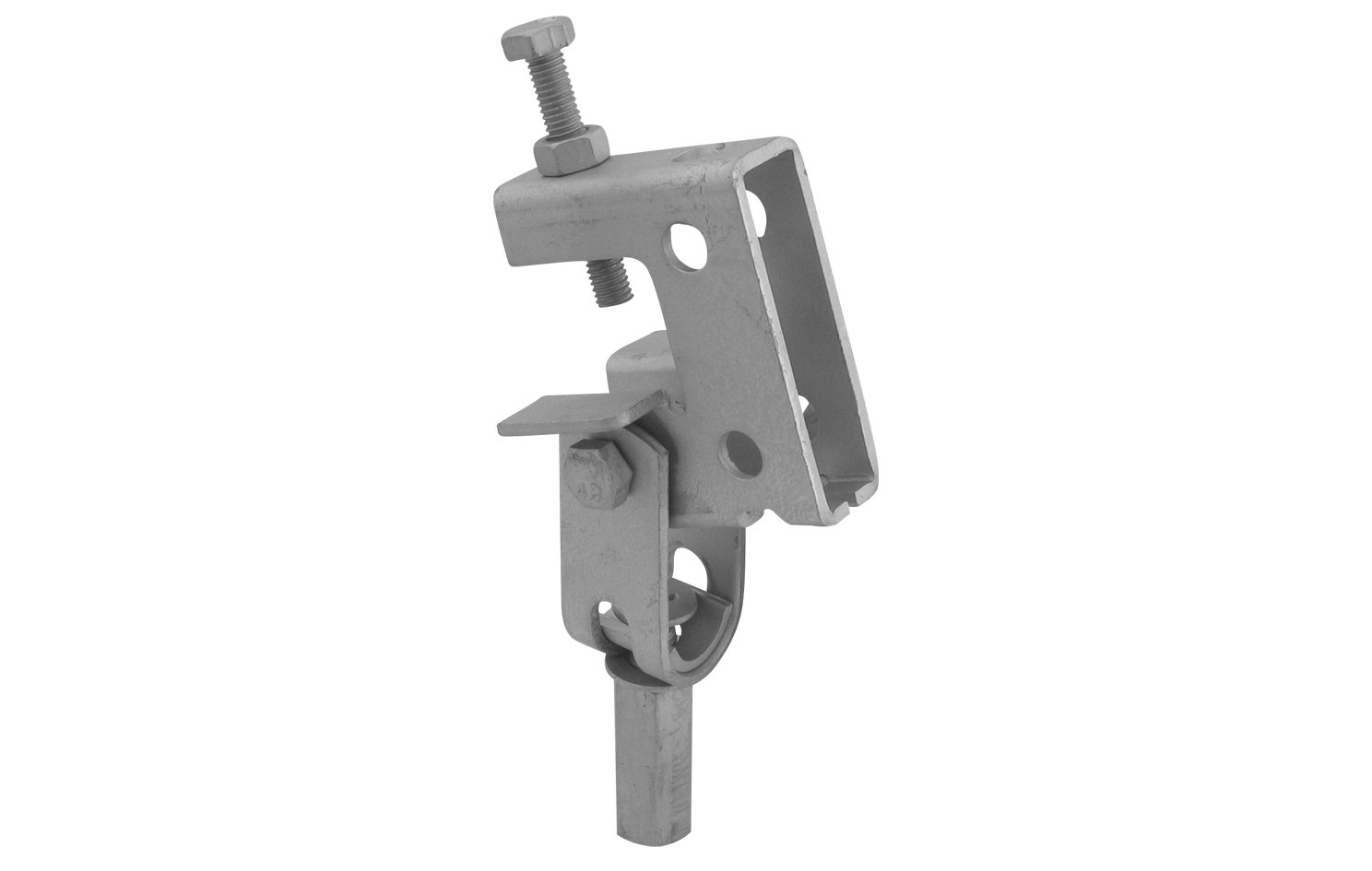 2-gelenkige Trägerklammer, für Flansch bis zu 24 mm, zur Befestigung von leichten Elementen an schrägen Trägern ohne Schweißen oder Bohren, drehbar 30° seitlich, 45° vorwärts