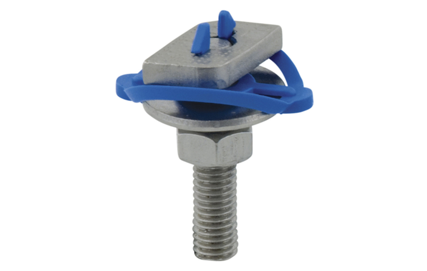 für Schiene WM1, 15, 2, komplett vormontierte Schiebemutter mit Gewindestift, Unterlegscheibe und Federring aus Polyoxymethylen, blau, bis zur Endfixierung flexibel umpositionierbar