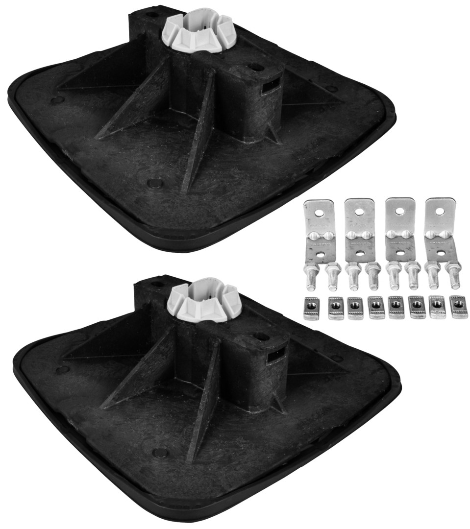modulares Montagesystem zur Aufständerung von Klimageräten, Laufwegen, Lüftungsleitungen, Kabeltrassen, u.v.m. auf Flachdächern, geeignet für vertikale und horizontale Installationen, 360° drehbarer Einsatz für RapidStrut 41 x 41 mm oder RapidStrut DS 5 (41 x 51 mm), mit rutschfester Antivibrationsmatte, Spritzgussteile aus WPC (Holz-Kunststoff-Verbundwerkstoff) bzw. PA mit 30% Glasfaseranteil, beständig gegen UV-Strahlung und chemische Einflüsse, bestehend aus 2x Yeti 335 mit rutschfester Antivibrationsmatte (aus Gummi), 4x Strut Verbinder 90°, 8x Sechskantschrauben und Schiebemuttern