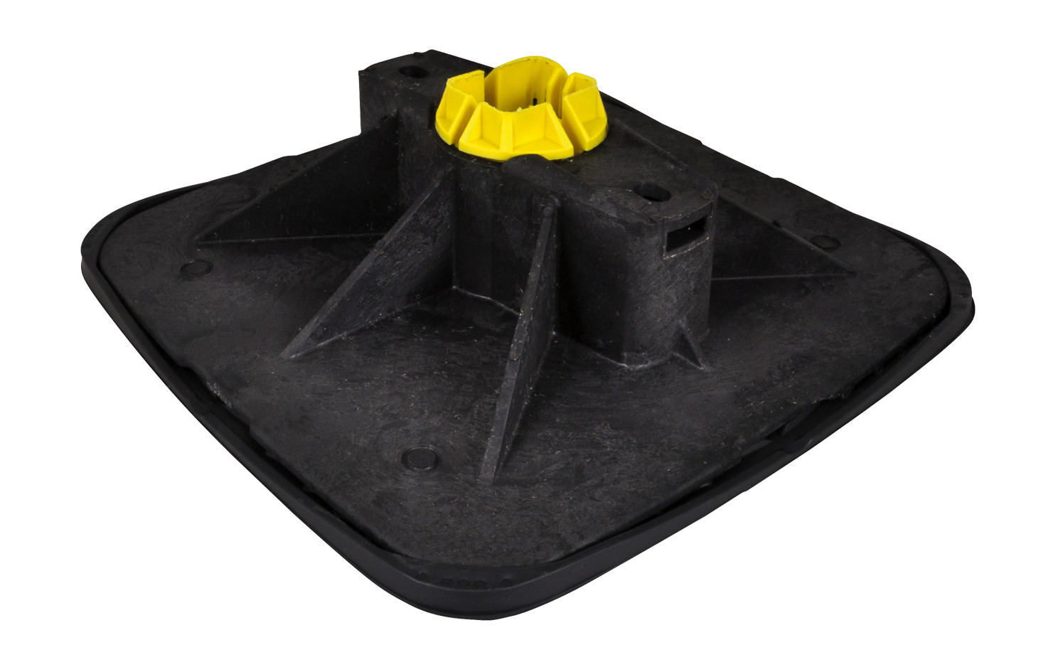 modulares Montagesystem zur Aufständerung von Klimageräten, Laufwegen, Lüftungsleitungen, Kabeltrassen, u.v.m. auf Flachdächern, geeignet für vertikale und horizontale Installationen, 360° drehbarer Einsatz für RapidStrut 41 x 41 mm oder RapidStrut DS 5 (41 x 51 mm), mit rutschfester Antivibrationsmatte, Spritzgussteile aus WPC (Holz-Kunststoff-Verbundwerkstoff) bzw. PA mit 30% Glasfaseranteil, beständig gegen UV-Strahlung und chemische Einflüsse, bestehend aus 2x Yeti 335 mit rutschfester Antivibrationsmatte (aus Gummi), 4x Strut Verbinder 90°, 8x Sechskantschrauben und Schiebemuttern