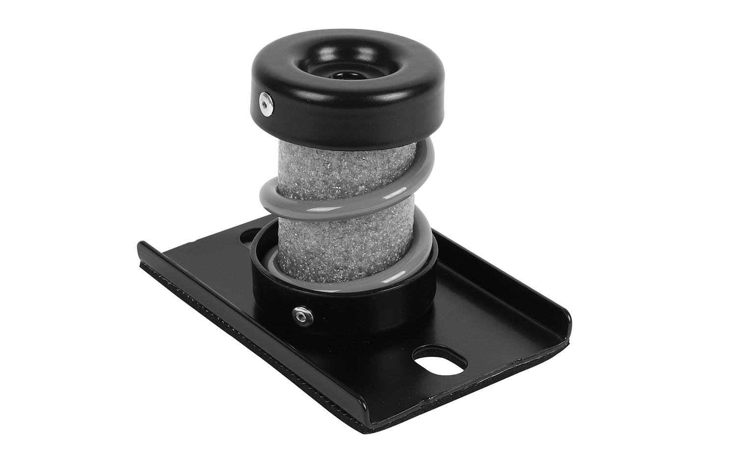 hochleistungsfähiger Stahlfederdämpfer für leichte Geräte, empfohlen für Geräte mit niedrigen Arbeitsgeschwindigkeiten ab 700 U/min und darüber, epoxidpulverbeschichtete Grundplatte, Kappen und Federn bieten erhöhten Korrosionsschutz, Technical Data, Verhältnis Kx / Kz = Ky / Kz = 1,0, Gebrauchstemperatur: -90° C bis 150° C, Abkantungen in der Metallplatte sorgen für erhöhte Steifigkeit, Langlöcher erleichtern die Positionierung und Verankerung auf verschiedenen Untergründen