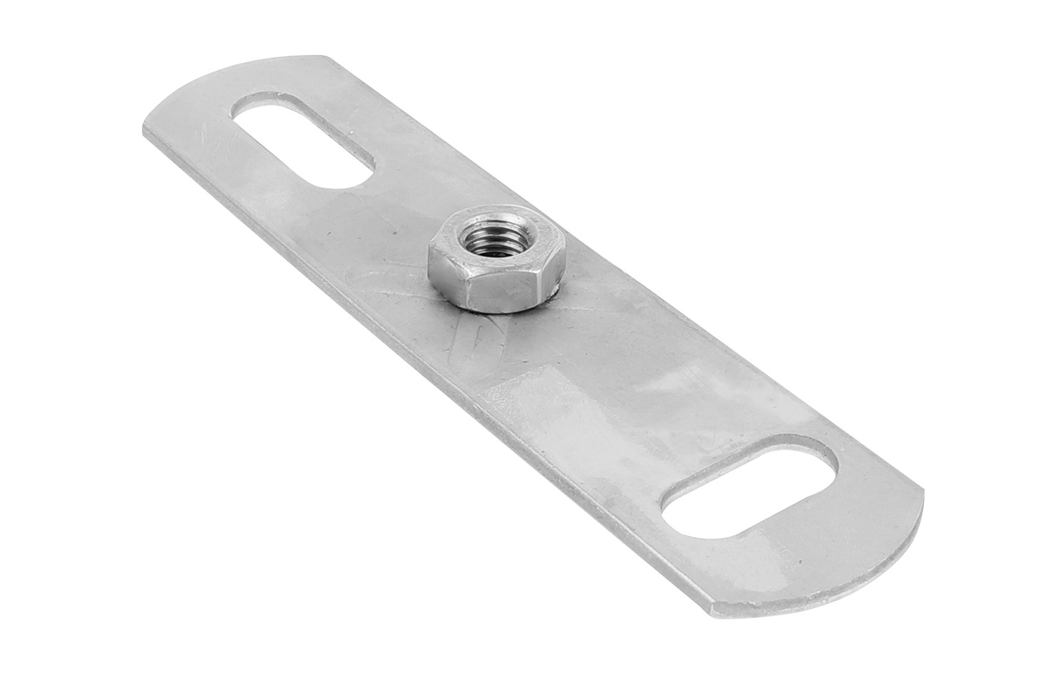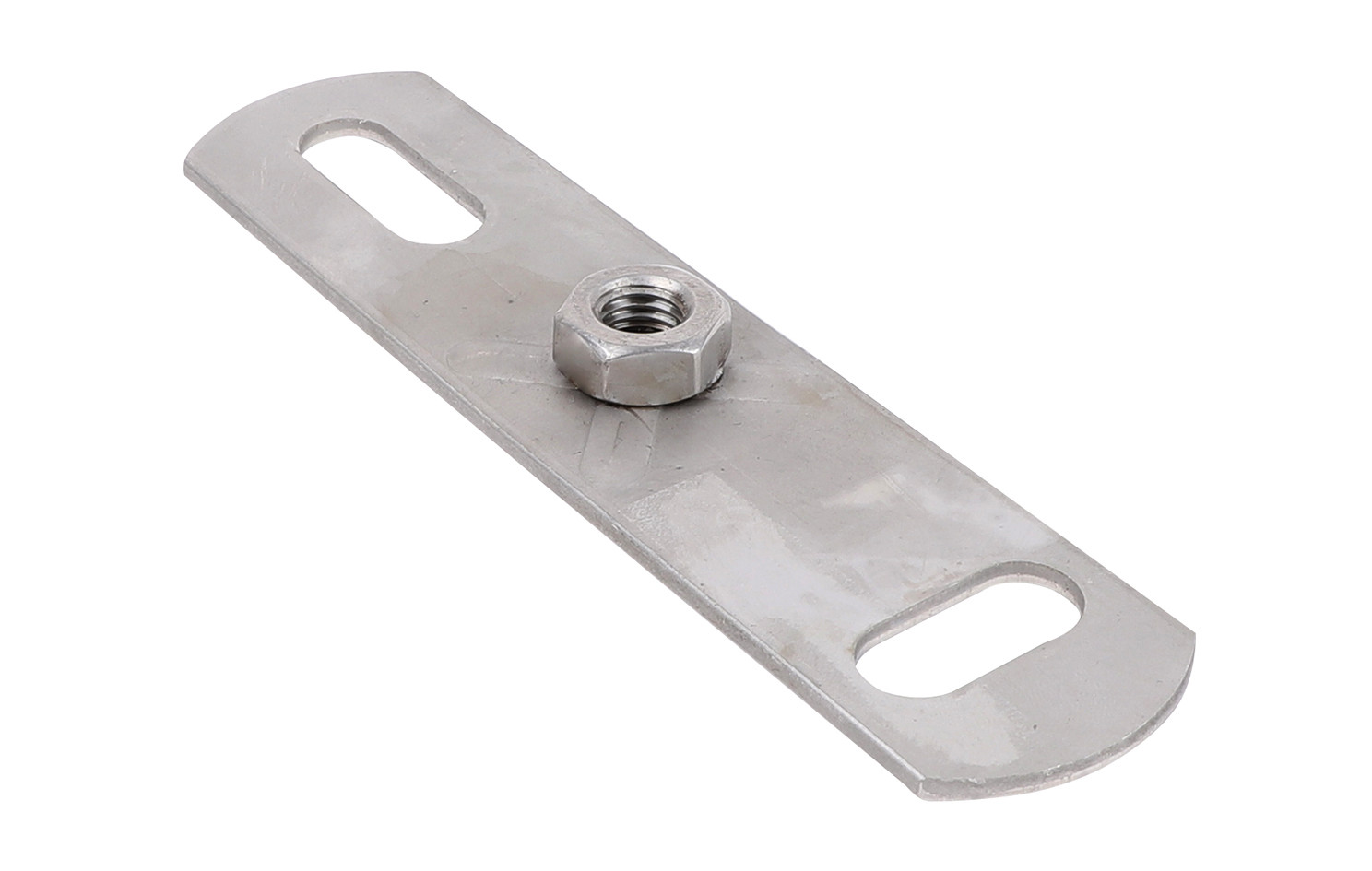 Befestigungslöcher als Langlöcher um 90° zueinander ausgestanzt, 4-fach angeschweißte Anschlussmutter