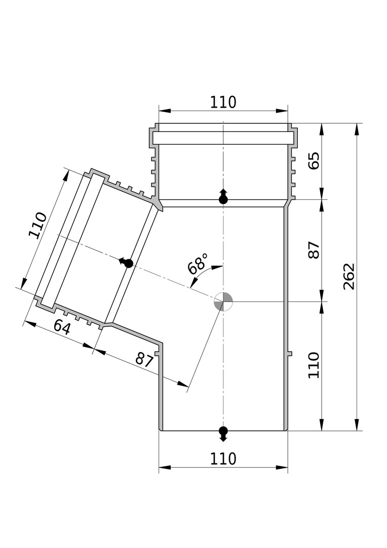 Wavin Abzweig SiTech+ DN 110/110, 67,5Grad