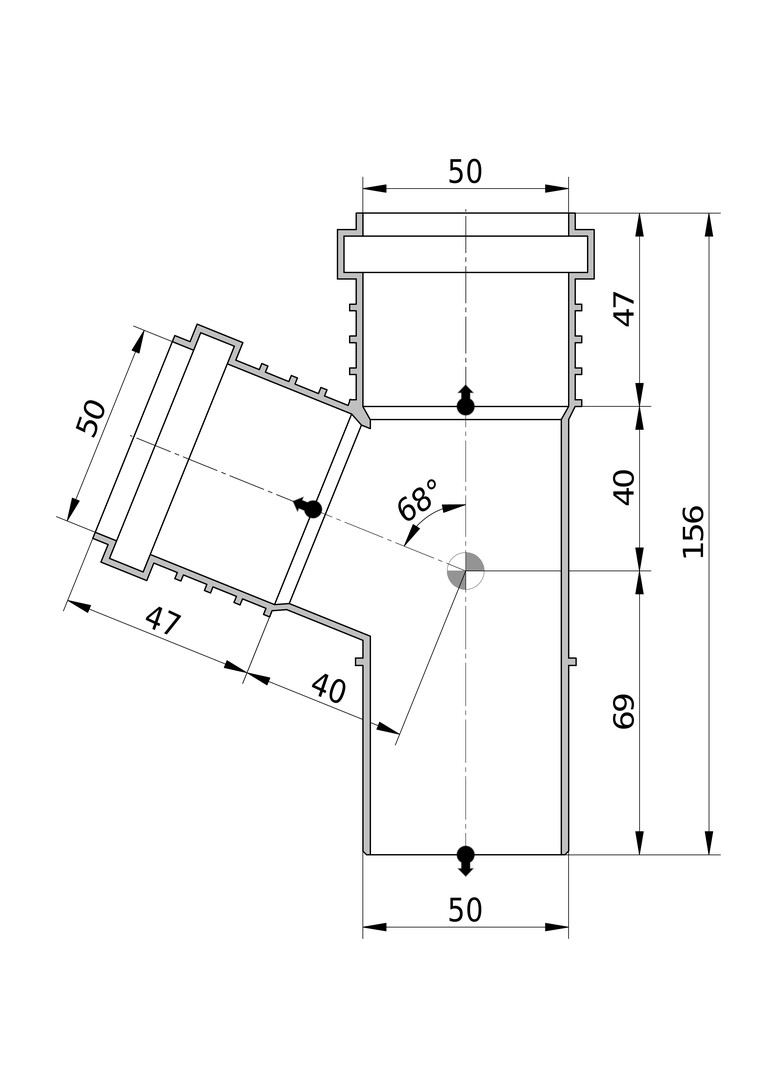 Wavin Abzweig SiTech+ DN 50/50, 67,5Grad
