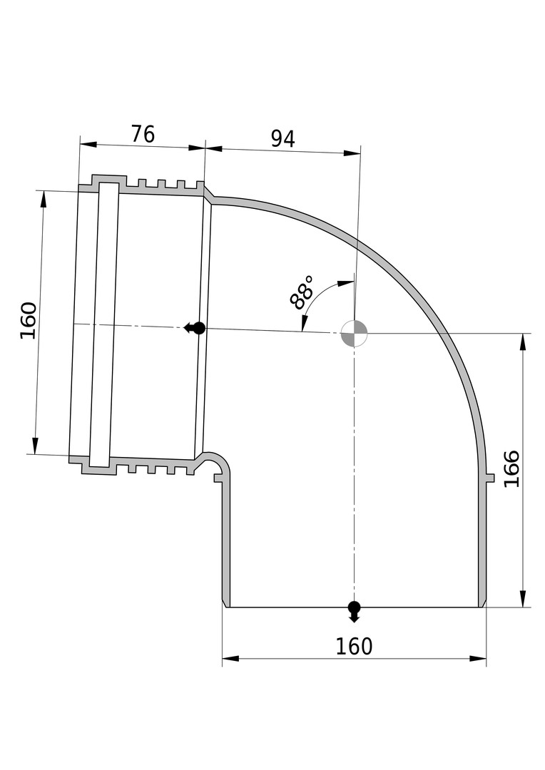 Wavin Bogen SiTech+ 87,5°, DN 160