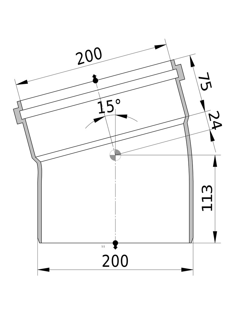 | Rohraußendurchmesser Anschluss 1 | 200 mm |