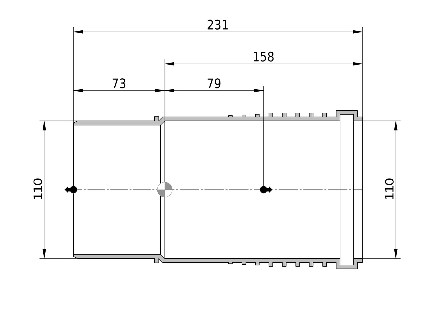 | Rohraußendurchmesser Anschluss 1 | 110 mm |