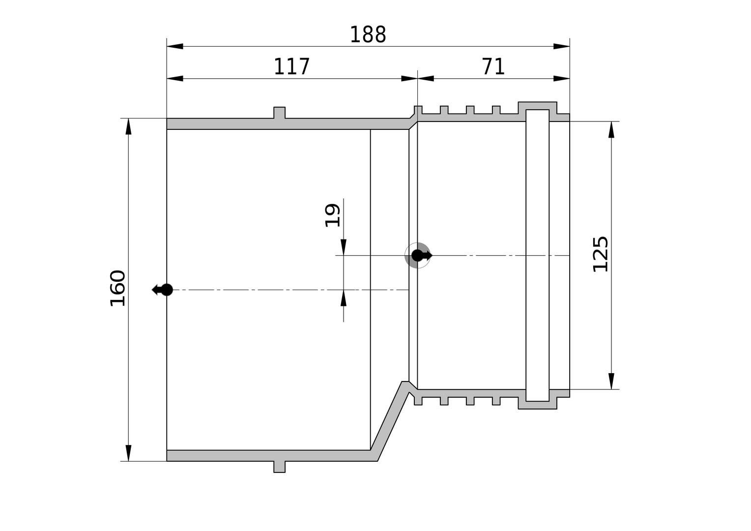 | Rohraußendurchmesser Anschluss 2 | 160 mm |