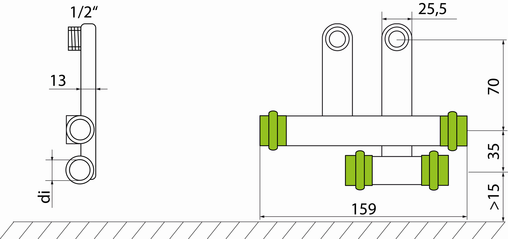 ohne Ausstemmen der Wand links, rechts und mittig verwendbar, für Presssystem Kontur V, geeignet für AWA-E, AWA, PBV und PBV-L