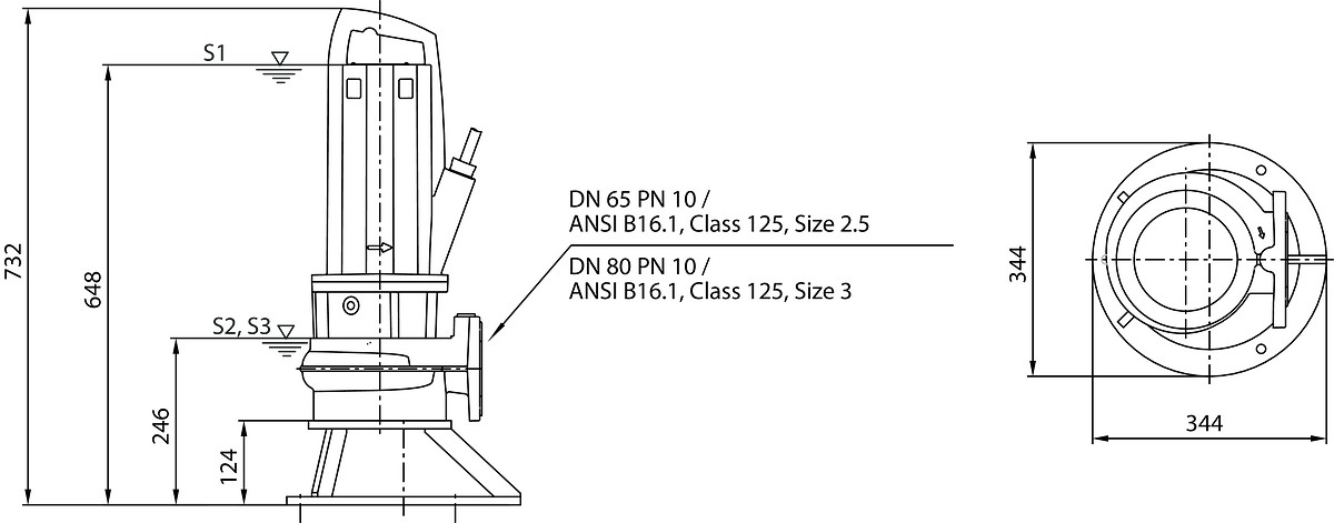 | Dimension | C06DA-345/E-O, DN 65/80, 2,5 kW, 400 V |