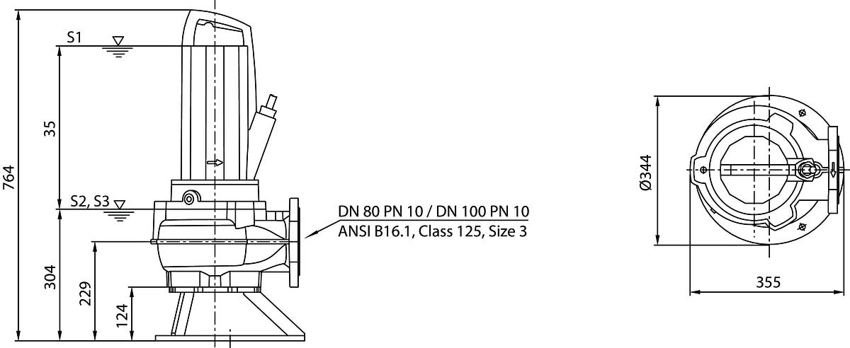 2-polig, Abwasser-Tauchmotorpumpe für den Dauerbetrieb zur stationären und transportablen Nassaufstellung sowie zur stationären Trockenaufstellung, Förderung von Rohabwasser, Abwasser mit Fäkalien, Schmutzwasser, mit Abwasser-Tauchmotorpumpe mit 10 m Kabel, Betriebs- und Wartungshandbuch, optional IE3-Motoren, PTC-Fühler für die Wicklungsüberwachung, statische Dichtungen in FKM, Beschichtung Ceram C0 für Gehäuse und Laufrad, Sonderspannungen, verstopfungsarme Freistromlaufräder