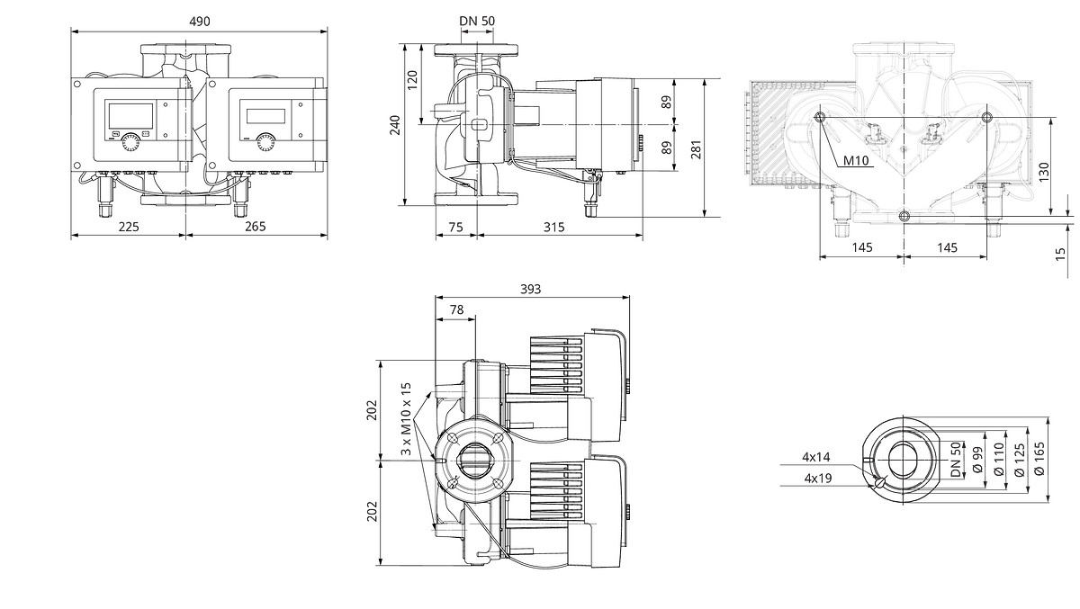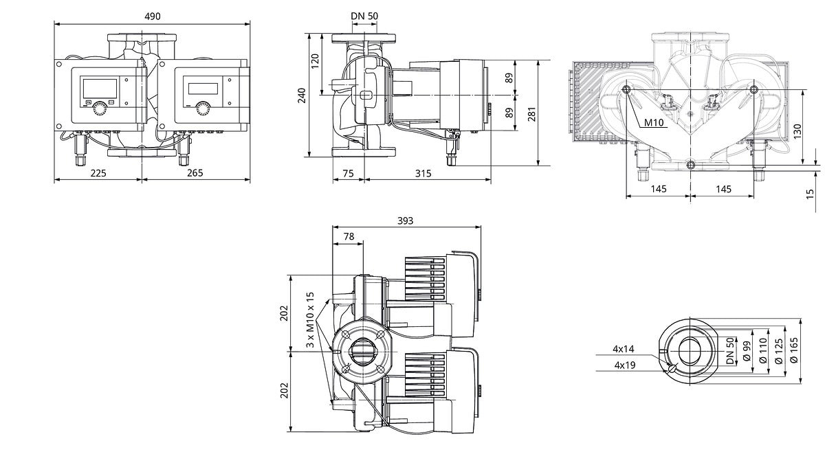 Wilo Nassläufer-Doppelpumpe Stratos MAXO-D 50/0,5-8, PN 10, Flansch