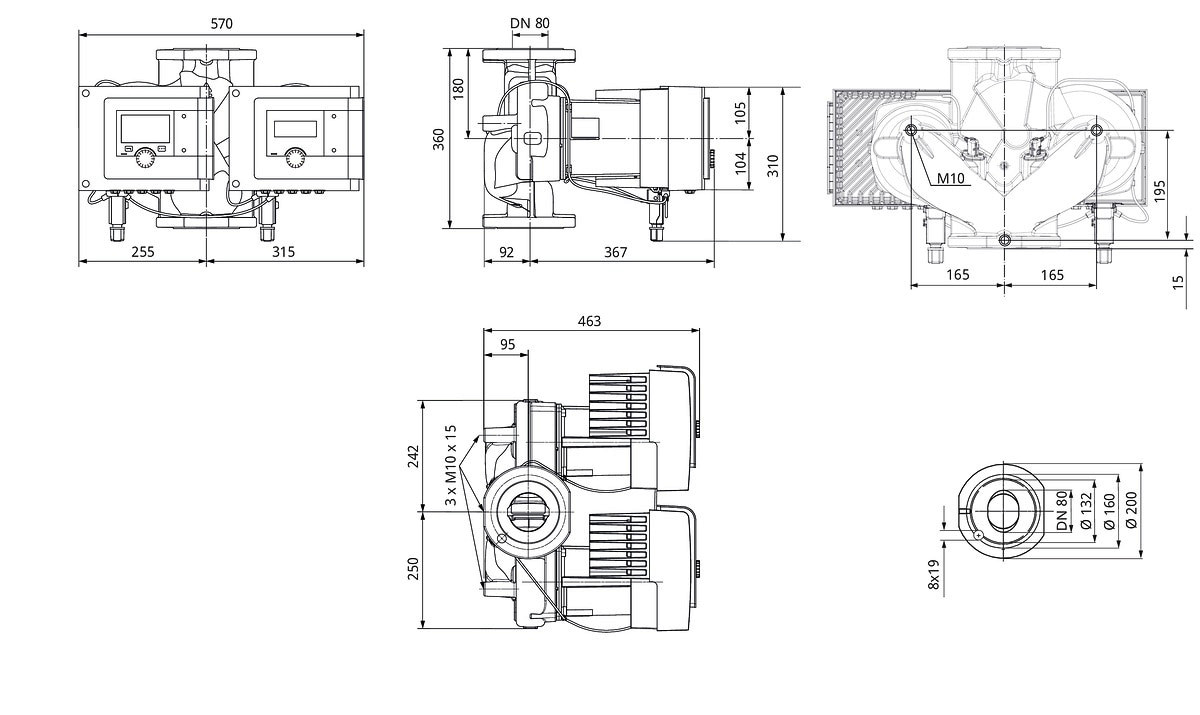 Wilo Nassläufer-Doppelpumpe Stratos MAXO-D 80/0,5-12, PN 10, Flansch