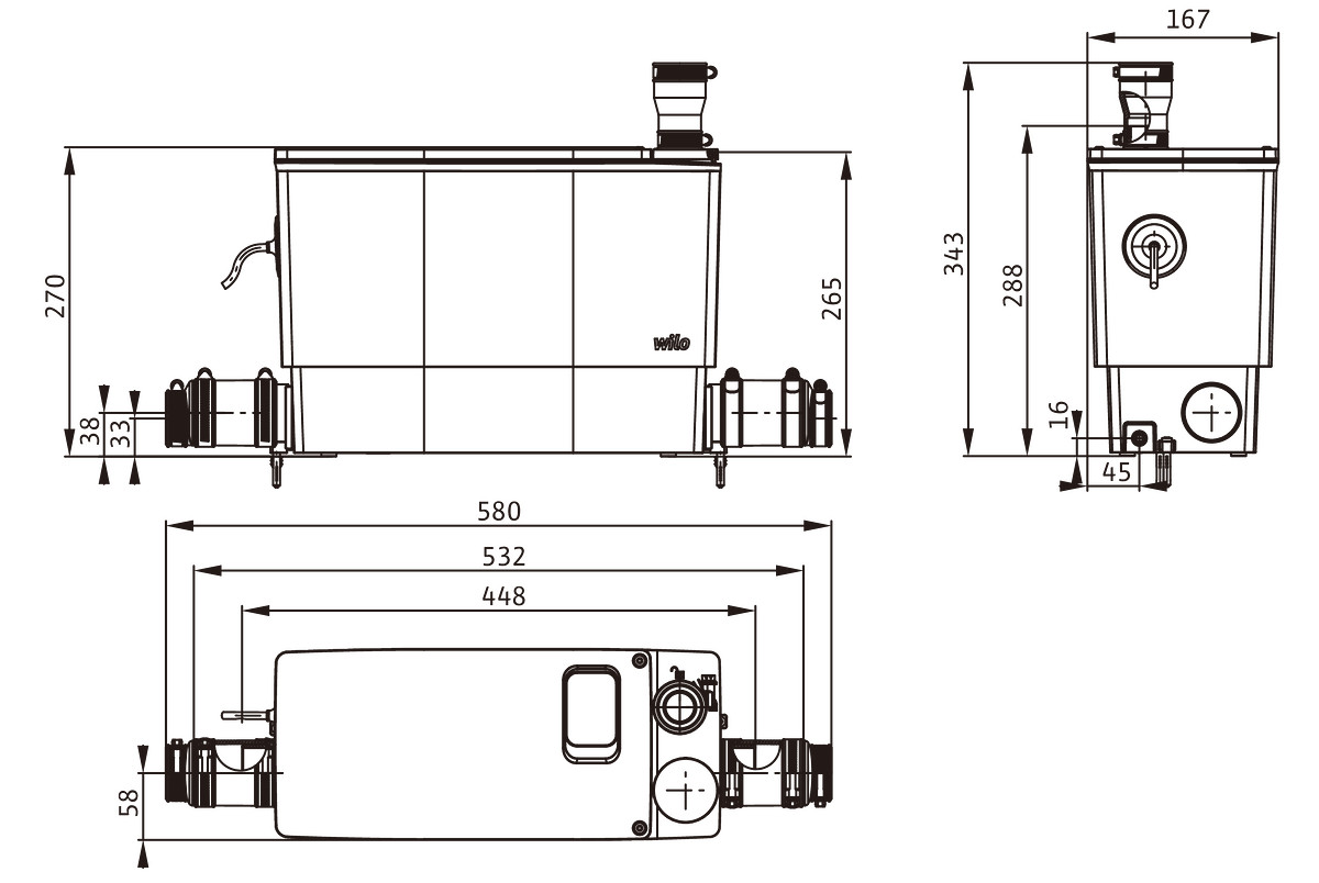 Wilo Schmutzwasser-Hebeanlage HiDrainlift 3 3-35, 511x264x187 mm, 5,4 kg, Überflur 10423025