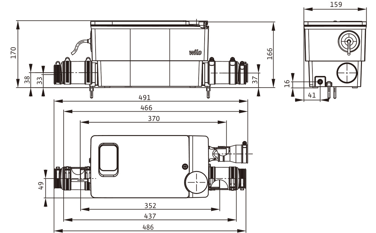 Wilo Schmutzwasser-Hebeanlage HiDrainlift 3 3-24, 293x171x177 mm, 3,6 kg, Überflur 10423024