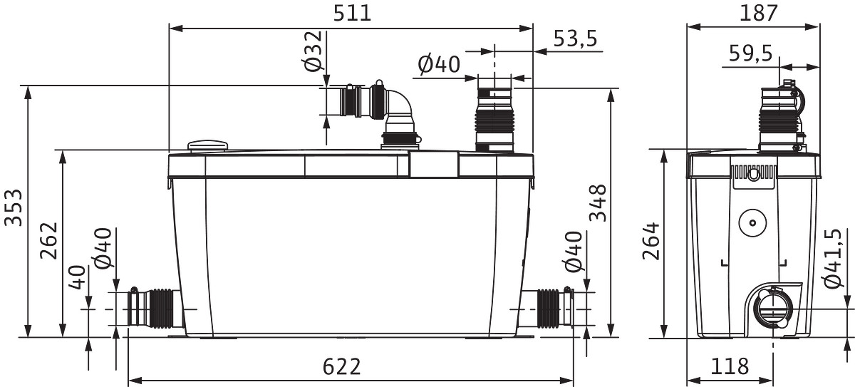 Wilo Schmutzwasser-Hebeanlage HiDrainlift 3 3-35, 511x264x187 mm, 5,4 kg, Überflur