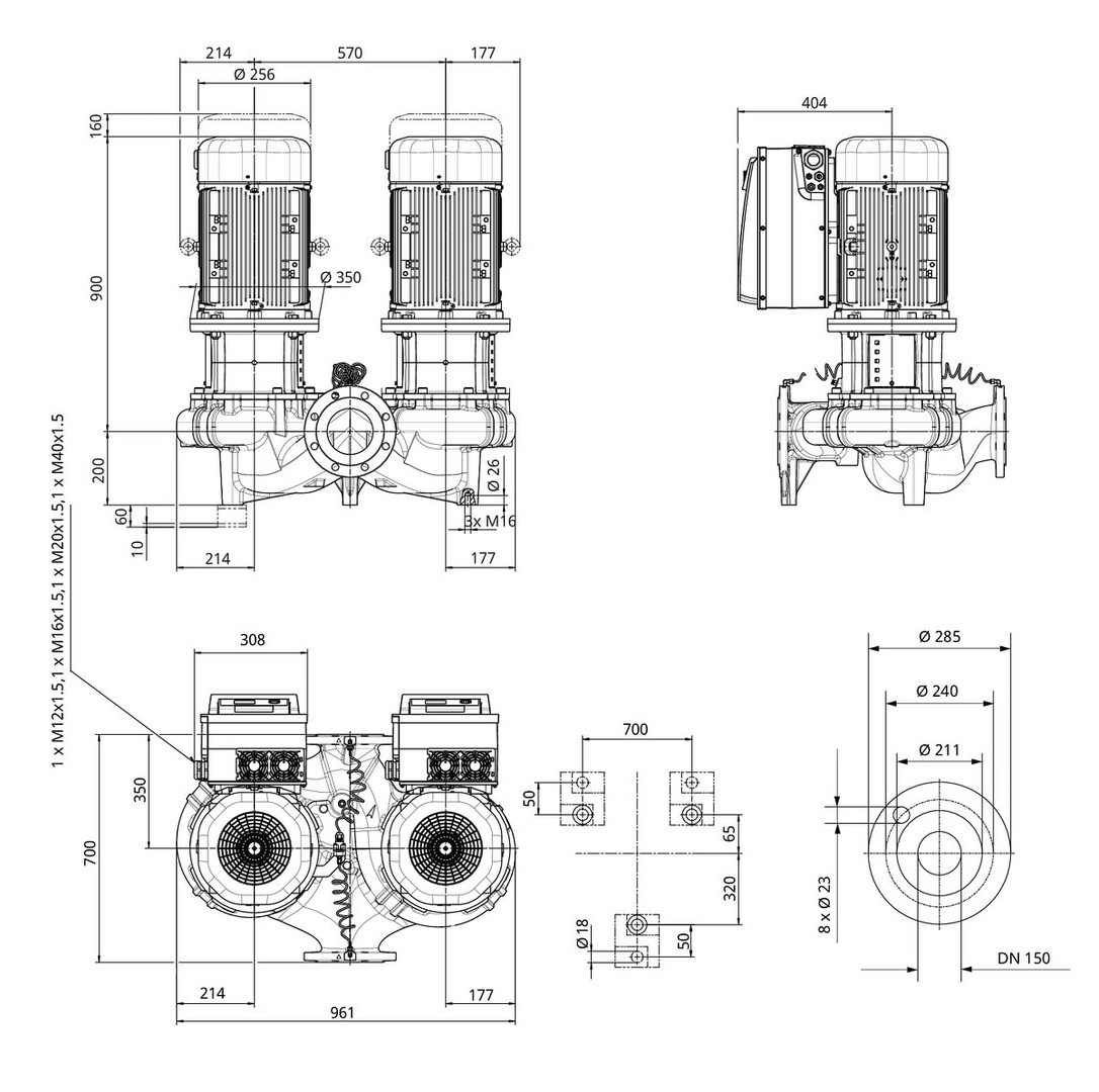 Wilo Trockenläufer-Hocheffizienz-Doppel Stratos GIGA-D 150/2-16/11, DN150 (PN 16), 10.9kW, 11.30kW
