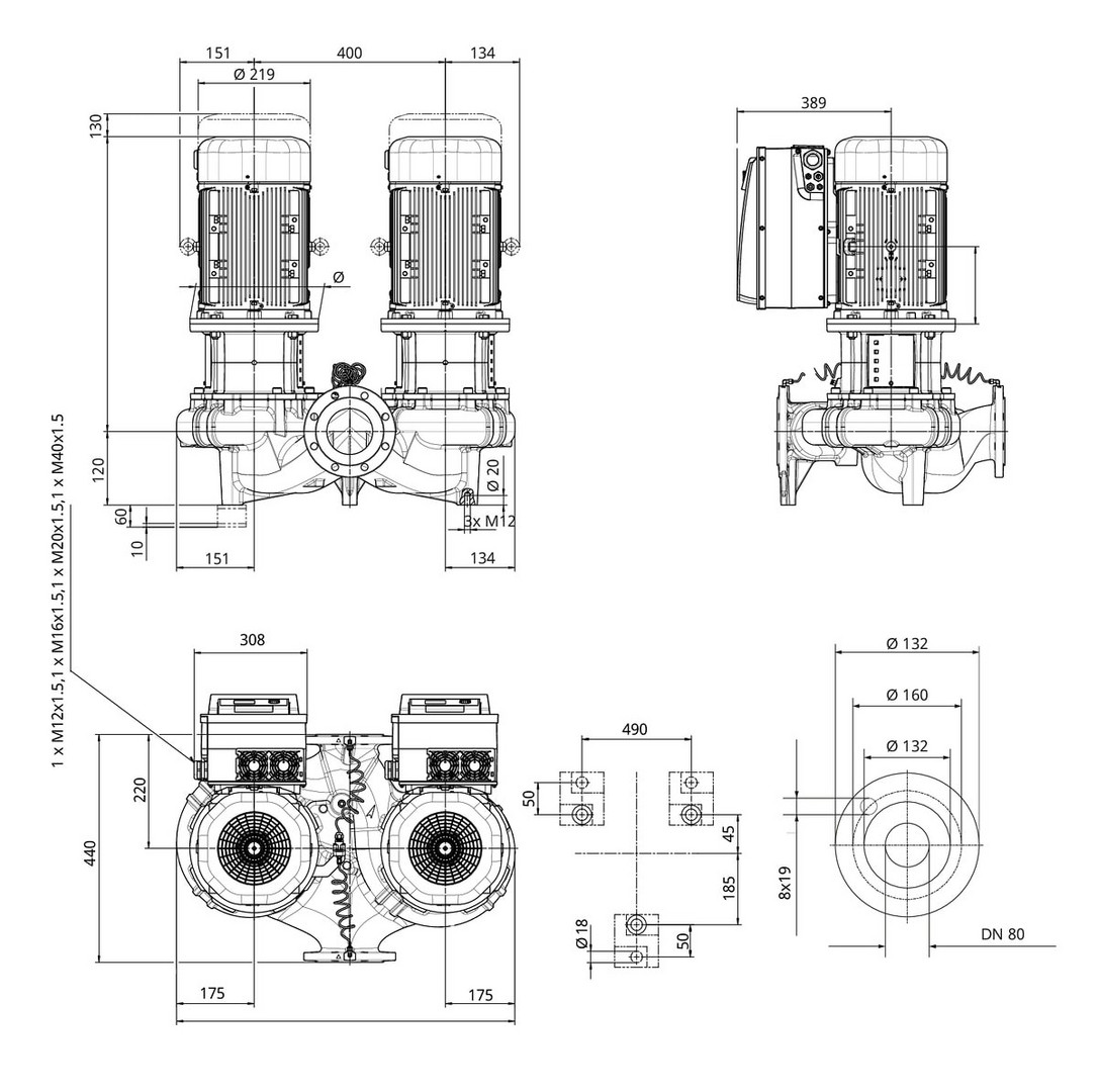 Wilo Trockenläufer-Hocheffizienz-Doppel Stratos GIGA-D 80/4-48/22, DN80 (PN 16), 21.0kW, 21.40kW