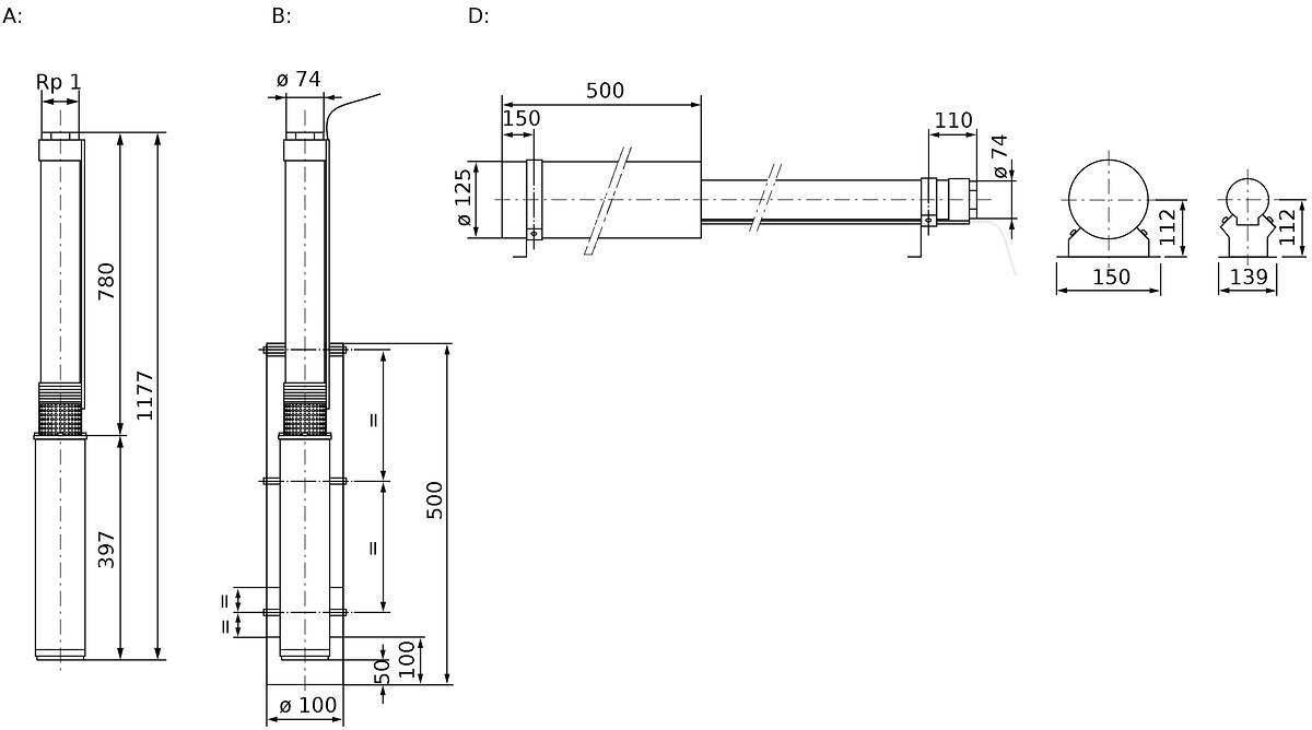 mehrstufige 3" Unterwassermotorpumpe in Mantelbauweise für den vertikalen oder horizontalen Einbau, zur Förderung von Regen- und Brauchwasser aus Bohrlöchern und Brunnen für die Beregnung, Bewässerung und Wasserversorgung, mit Hydraulik + Motor fertig montiert, 1,8 m Anschlusskabel, Schaltkasten (Kondensatorbox) bei Einphasen-Wechselstromvariante, Einbau- und Betriebsanleitung, mediumberührende Teile korrosionsfrei, integrierter Rückflussverhinderer, wiederwickelbarer Motor