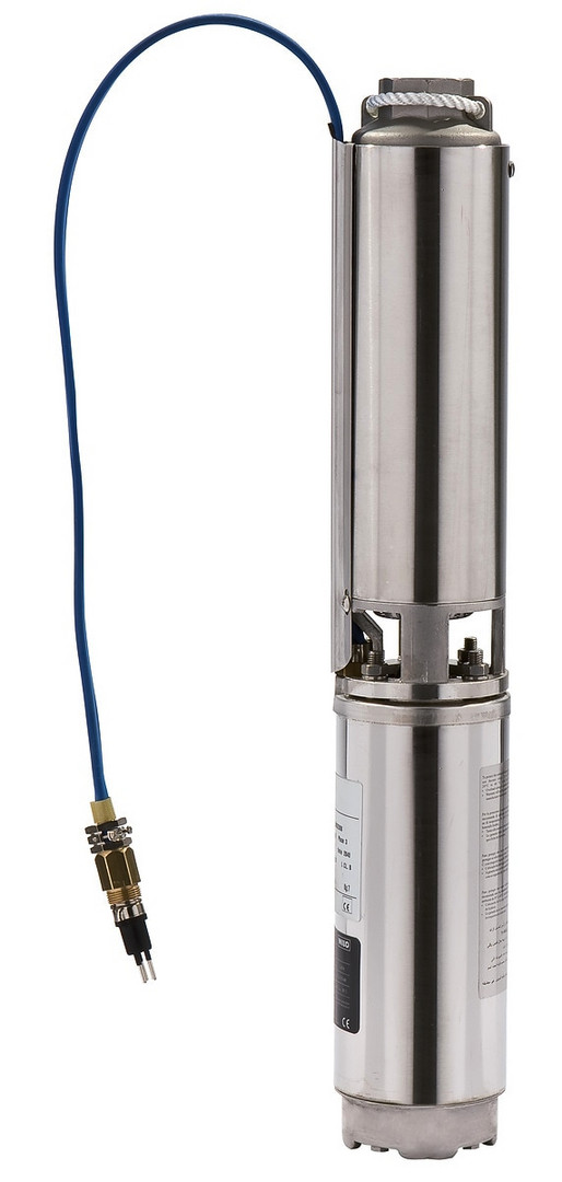 mehrstufige 4" Unterwassermotorpumpe in Mantelbauweise für den vertikalen und horizontalen Einbau, zur Förderung von Regen- und Brauchwasser aus Bohrlöchern und Brunnen für die Beregnung, Bewässerung und Wasserversorgung, Hydraulik + Motor fertig montiert, 1,5 bzw. 1,75 m Quick Connect-Anschlusskabel, Wechselstromvariante mit Schaltkasten mit Kondensator, thermischem Motorschutz und Ein-/Ausschalter, Einbau- und Betriebsanleitung, mediumberührende Teile korrosionsfrei, integrierter Rückflussverhinderer, verschleißarm durch aufschwimmende Laufräder, Motor, Verlängerung des Motorkabels, ohne Demontage der Hydraulik, Rp 1 1/4/2