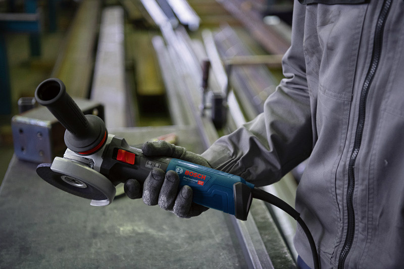 Winkelschleifer GWS 14-125 S, Maximale Produktivität durch eine höhere Leistung und Strapazierfähigkeit und seine Drehzahlvorwahl machen den GWS 14-125 S Professional extrem effizient. Sein deutlich kleinerer Griffumfang sorgt für wesentlich höheren Komfort bei der Arbeit. KickBack Control, Wiederanlaufschutz und ein Seitengriff mit Vibration Control garantieren einen höheren Anwenderschutz. Der GWS 14-125 S Professional ist ideal zum Schleifen von Metall und Schweißnähten sowie zum Schneiden von Metall, Beton, Mauerwerk und Fliesen. Der kompakte Winkelschleifer ist kompatibel mit den Bosch Staubabsaugsystemen GDE 125 EA-T Professional und GDE 115 / 125 FC-T Professional. Er bietet außerdem eine konstante Drehzahl, einen Sanftanlauf und einen Überlastschutz. Zusatzhandgriff Vibration Control (2 608 900 000). Schutzhaube (1 605 510 365). Anklippbare Trennschutzhaube aus Kunststoff (2 608 000 757). Zweilochschlüssel (1 607 950 043). Aufnahmeflansch (1 605 703 099). Spannmutter (1 603 340 040). Karton