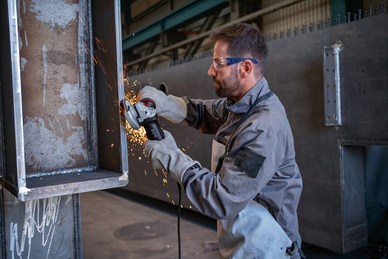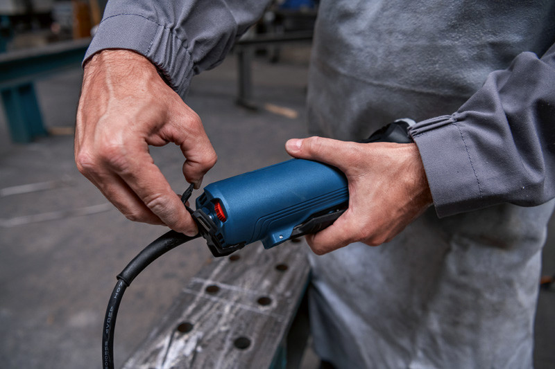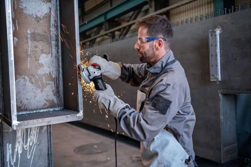 Winkelschleifer GWS 17-150 PS, Der neue PROtection-Schalter des GWS 17-150 PS Professional sorgt für optimalen Komfort bei der Arbeit dank der ergonomischen und schlanken Bauweise des Griffs. Er gewährleistet hohen Anwenderschutz durch sofortiges Abschalten des Geräts bei Loslassen des Schalters. Hohe Leistung und Robustheit für maximale Produktivität, und verbesserter Staubschutz durch Lüftungsschlitze an der Werkzeugrückseite. Mit KickBack Control, Wiederanlaufschutz, Drehzahlvorwahl und Seitengriff mit Vibration Control. Schleifen von Metall und Schweißnähten sowie Trennen von Metall, Beton, Ziegel und Fliesen sind die Anwendungsbereiche des GWS 17-150 PS Professional. Der kleine Winkelschleifer verfügt über eine konstante Drehzahl, Sanftanlauf und Überlastschutz. Karton. Zusatzhandgriff Vibration Control (2 608 900 000). Schutzhaube (1 605 510 366). Anklippbare Trennschutzhaube aus Metall (2 608 000 759). Zweilochschlüssel (1 607 950 043). Aufnahmeflansch (1 605 703 099). Spannmutter (1 603 340 040). Staubfilter (2 608 000 824)