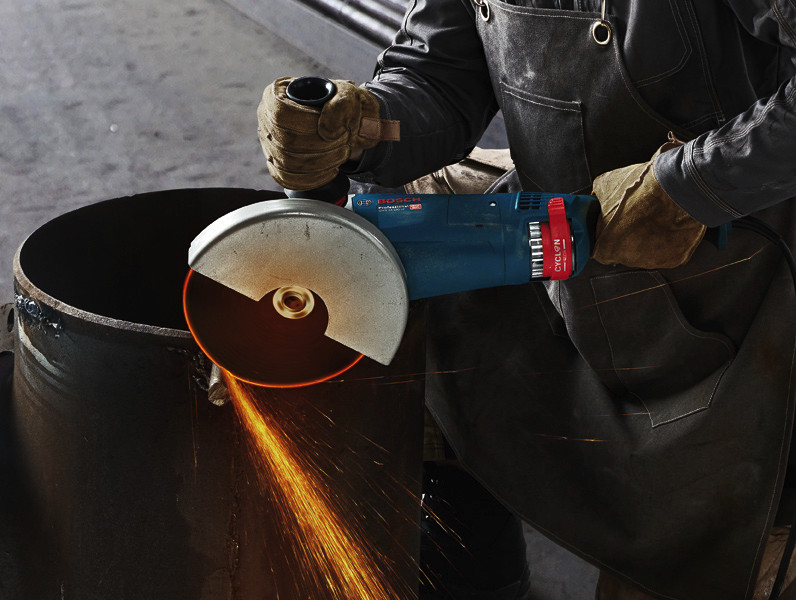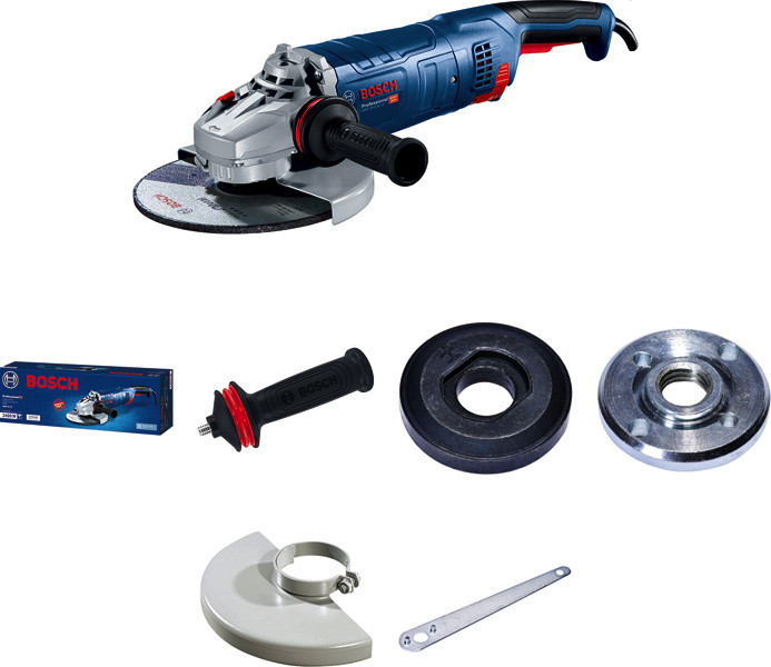Winkelschleifer GWS 24-230 JZ, Der Winkelschleifer GWS 24-230 JZ Professional bietet das revolutionäre Staubschutzsystem CYCLON TECH und erhöhten Anwenderschutz. Mit seinem starken 2.400-Motor eignet er sich für kraftvolles Trennen und Schleifen. Die innovative CYCLON TECH-Funktion sammelt bis zu 90 % des Staubs am Winkelschleifer und erhöht dadurch die Werkzeuglebensdauer. Dank geringerer Motorvibration und einem Anti-Vibration-Zusatzhandgriff bietet der Winkelschleifer mehr Komfort bei der Anwendung. Dieser Winkelschleifer ermöglicht kraftvolles Trennen und Schleifen verschiedener Materialien, inklusive Metall, Beton und Stein. Er ist mit der Bosch Absaughaube GDE 230 FC-S kompatibel. Der GWS 24-230 JZ Professional verfügt über Wiederanlaufschutz und Sanftanlauf für erhöhten Anwenderschutz. Karton. Abdeckschutz (1 619 P15 668). Zusatzhandgriff (1 602 025 030). Zweilochschlüssel (1 607 950 061). Aufnahmeflansch (ET-Nr. 2 605 703 014). Spannmutter (1 603 345 043)
