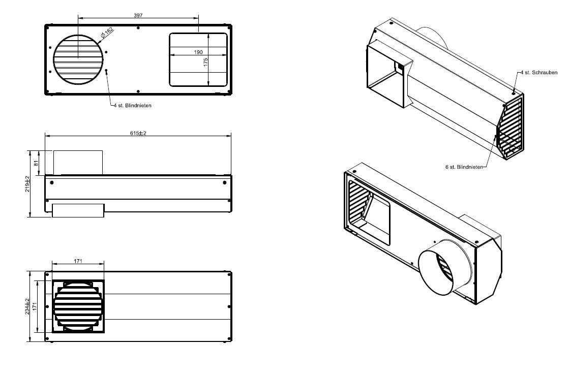 Wolf Doppelgitter DN 160, Edelstahl, für CWL-180 Excellent