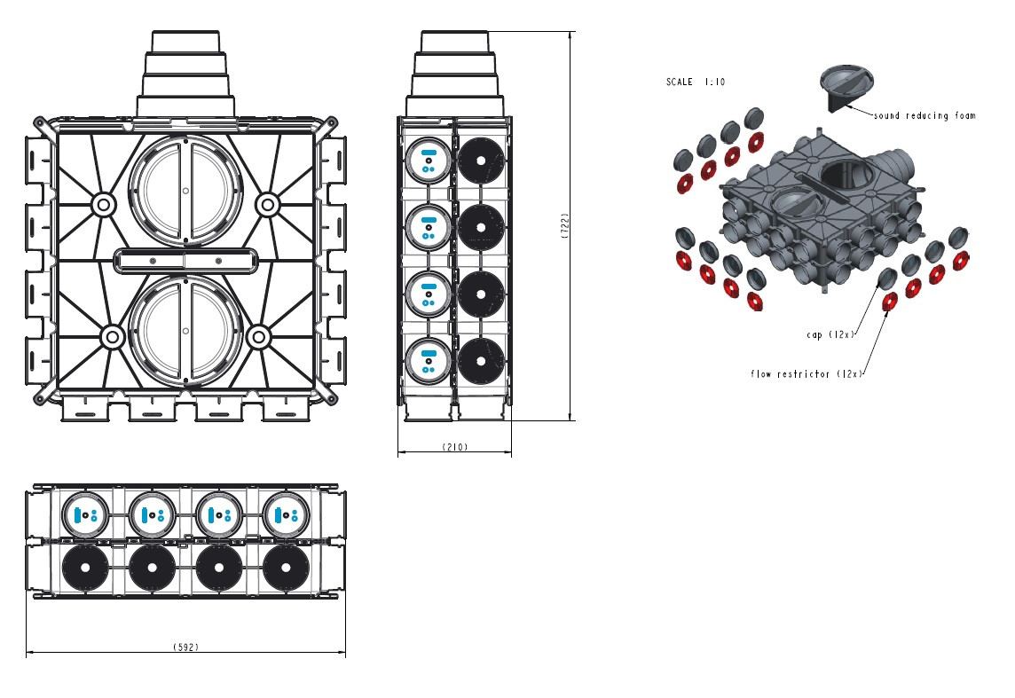 Wolf Luftverteiler 24 Stutzen DN 75 mit 4 Verschlusskappen