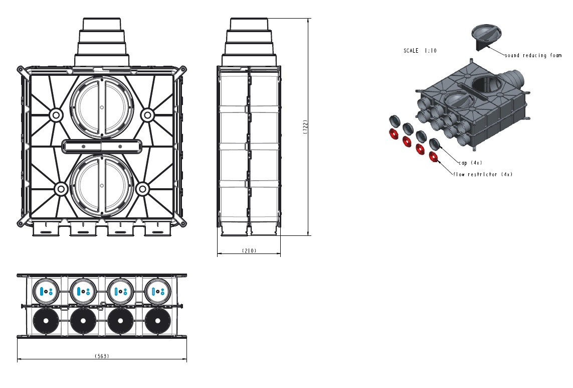 Wolf Luftverteiler 8 Stutzen DN 75 mit 4 Verschlusskappen