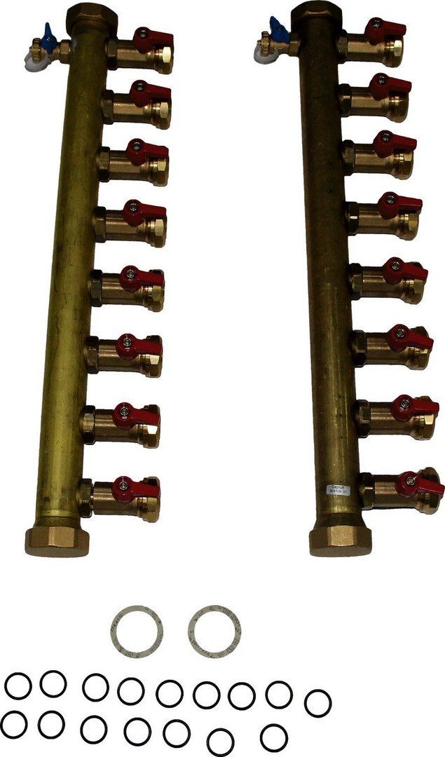 bestehend aus Sammelrohr für Vorlauf- und Rücklauf IG 2“, Kugelhähne und je einem Füll- und Entleerungshahn und Dichtungen, Kollektoranschlüsse: Klemmringverschraubung für PE-Rohr mit DN 32 Außendurchmesser