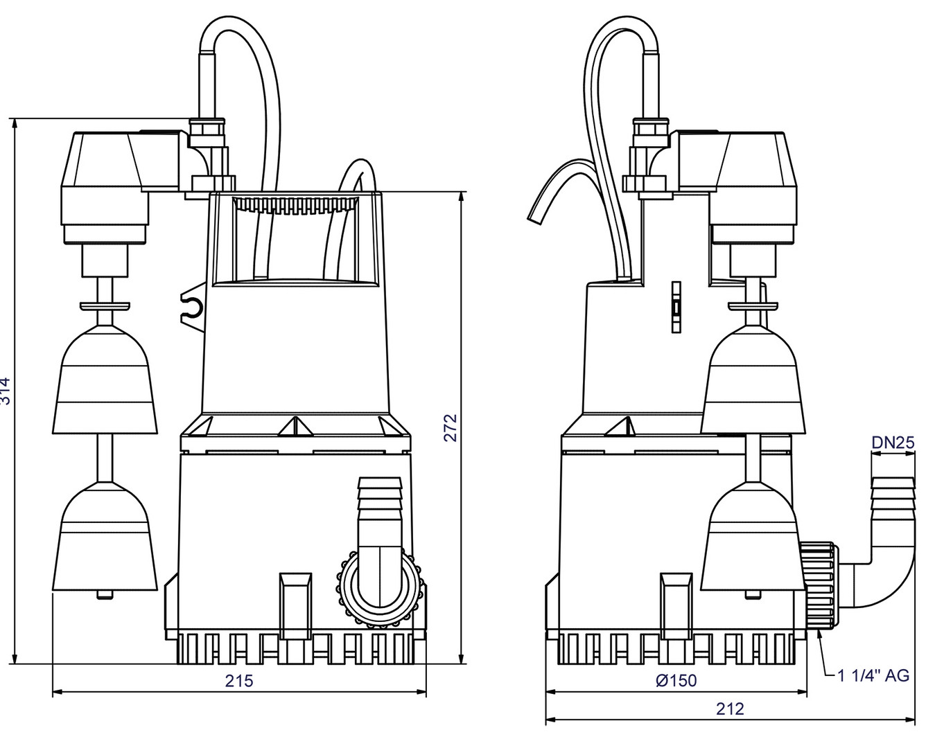 aus korrosionsbeständigem und schlagfesten Kunststoff und Edelstahl, für größere Feststoffe (30 mm) verfügbar (ZPK 40), doppelte Abdichtung durch Gleitringdichtung und zusätzl. Wellendichtring, eingebauter thermischer Wicklungsschutz zur Verhinderung von Überhitzungsschäden, Ausführung A mit Schwimmerschalter, Ausführung KS mit Kompaktschwimmer (kann in Rohre mit 250 mm Innendurchmesser eingebaut werden), mit 10 m Anschlusskabel mit Schutzkontaktstecker, Schlauchbogen 90 °C (ZPK 30: DN 25/ZPK 35 und ZPK 40: DN 32), zur Förderung von Klar- und Schmutzwasser aus Gruben- und Drainageschächten, Kellerentwässerung u. ä., transportable Pumpe zur Notentwässerung, Entwässerung von häuslichen Schmutzwasser ohne Fäkalien aus Dusche, Waschmaschine, Waschtisch u.s.w., 230 V, 50 Hz, Schutzart IP 68, Eintauchtiefe 5 m, Medientemperatur max. 40 °C/kurzzeitig 90 °C