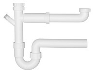 ASW Doppelspülengeruchsverschluss, PP weiß, mit Schlauchanschluss einfach