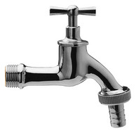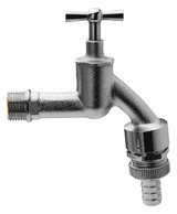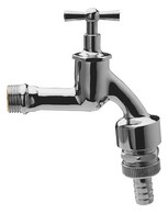 ASW Auslaufventil 1/2", Messing glanz verchromt, Haubengriff, Rohrbelüfter, Rückflussverhinderer, Schlauchverschraubung