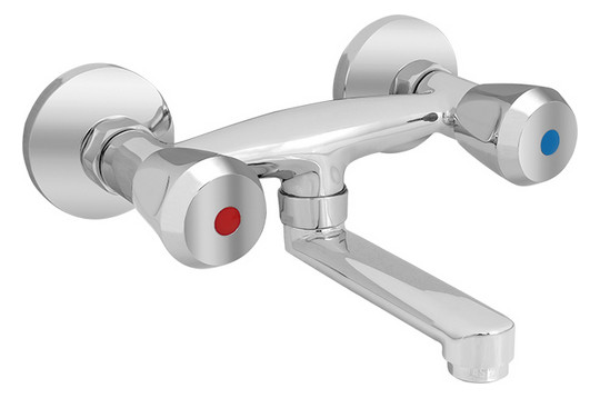 ASW Wand-Spültisch-Zweigriff-Armatur, DN 15, schwenkbar 100 mm, Messing verchromt
