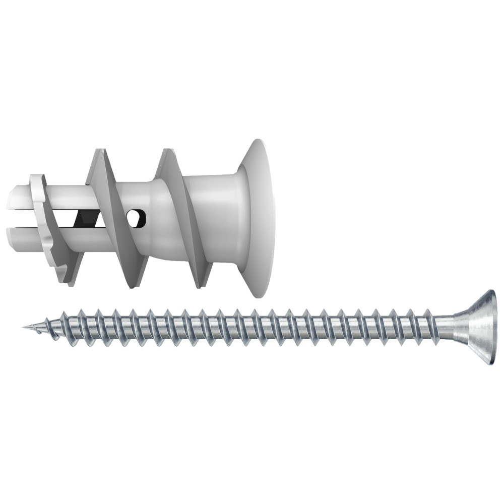 Der fischer Gipskartondübel GK ist aus hochwertigem Nylon gefertigt. Der Dübel wird in der Vorsteckmontage mit dem beigefügten Setzwerkzeug oberflächenbündig in einfach und doppelt beplankten Gipskarton eingedreht. Der spiralförmige Dübel hält durch Formschluss. Die kompakte Bauform ermöglicht auch die Montage in Wänden, bei denen die Plattendicke oder der Hohlraum hinter der Platte nicht bekannt ist. Der fischer GK kann Holz-, Blech- und Spanplattenschrauben von 4 bis 5 mm Stärke sowie unterschiedliche Haken und Ösen aufnehmen. Dadurch ist er universell geeignet, um z.B. Bilder, Leuchten und Elektroinstallationen sicher und schnell zu befestigen.