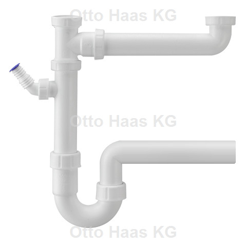 HAAS Doppelspülenanschluss 1 1/2" x 1 1/2" x 1 1/2", mit zentrischem Abgang, Polypropylen, weiß