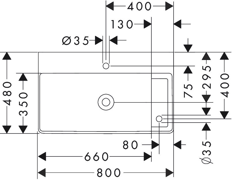 hansgrohe Aufsatzwaschtisch Xelu Q 800x480mm, geschliffen, Ablage rechts, weiß