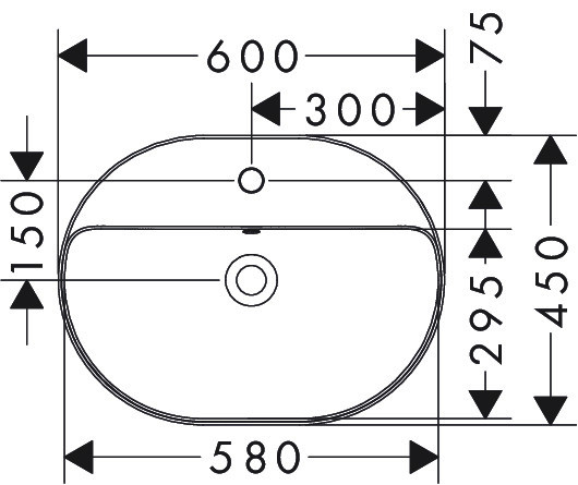 hansgrohe Aufsatzwaschtisch Xuniva U 600x450mm, mit Hahnloch/Überlauf, SmartClean, weiß