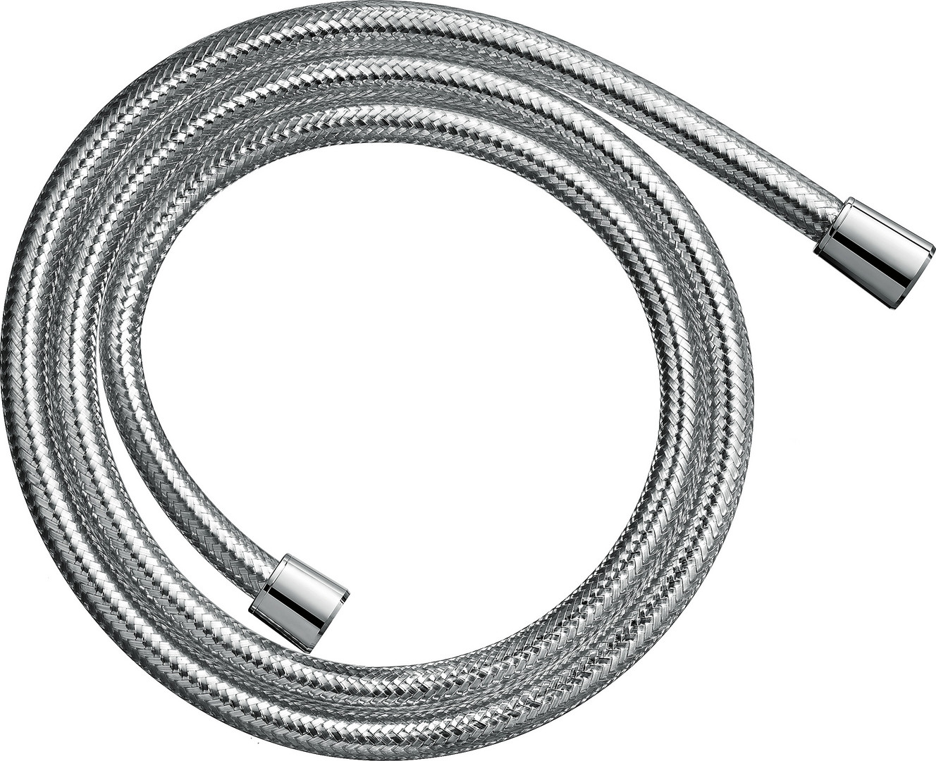Kunststoffschlauch in Metalloptik, Kunststoffhülle, brauseseitiger Drehwirbel gegen Verdrehen des Brauseschlauches, knickgeschützt, Anschlussgewinde G 1/2