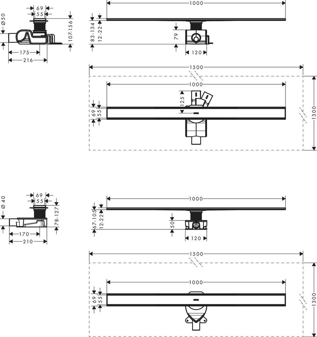 hansgrohe Duschrinne RainDrain Allround 1000 mm, Komplettset, Edelstahl gebürstet