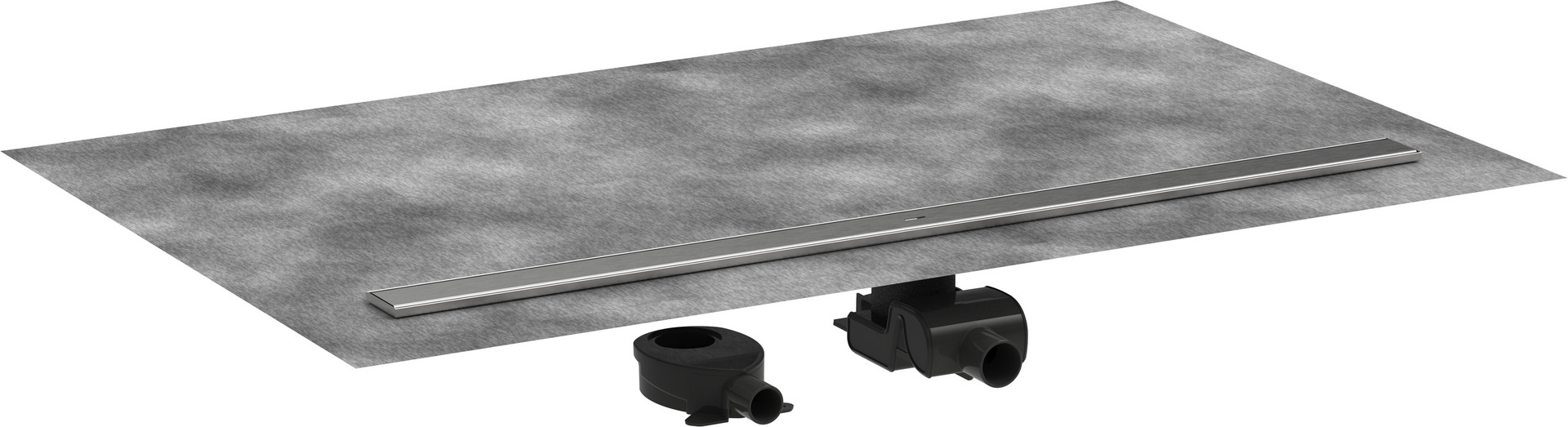 bestehend aus: Fertigset Duschrinne, Installationsset, werkseitig vormontiertem Dichtvlies, Abdeckungsheber, Siphons, Dichtmembran in 1300 x 1500 mm für Komplettabdichtung des ganzen Nassbereichs, Nenndurchmesser Anschluss DN 40, DN 50, Richtung Auslass: waagerecht, höhenverstellbares Installationsset, Ablaufleistung flache Installation bis zu 50 l/min, Ablaufleistung Standardinstallation bis zu 48 l/min, Anwendungsbereich: Neubau, Sanierung, dreh- und verstellbares Siphongehäuse, leicht zu reinigender Siphon, Abdeckungsheber ermöglicht einfaches herausnehmen des Fertigsets, mit herausnehmbarem Haarsieb, Art des Geruchsverschlusses: flüssig, Montageart: frei im Raum, Auswahl aus zwei verschiedenen Siphons, Werkstoffgüte Abdeckung Edelstahl V2A (1.4301), geeignet für Primärentwässerung, Quick Clean Antikalksystem