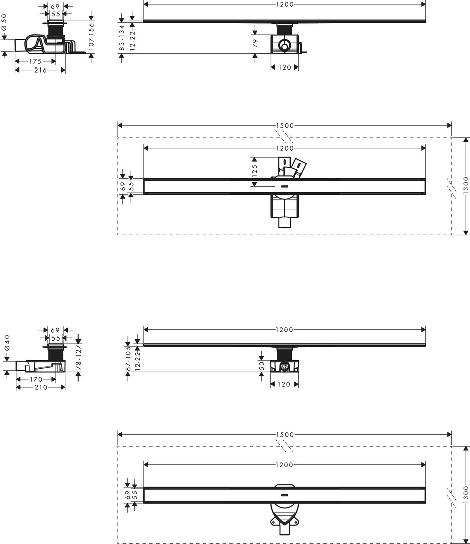 hansgrohe Duschrinne RainDrain Allround 1200 mm, Komplettset, Edelstahl gebürstet