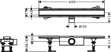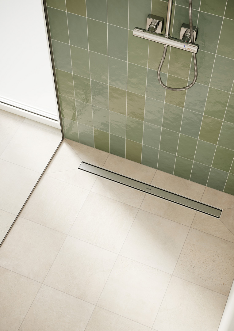 hansgrohe Duschrinne RainDrain Compact 600 mm, Komplettset, für Standardinstallation, Edelstahl gebürstet