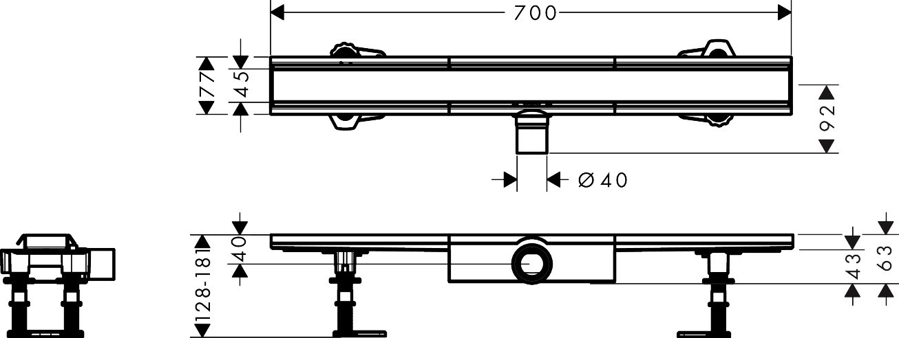 hansgrohe Duschrinne RainDrain Compact 700 mm, Komplettset, für flache Installation, Edelstahl gebürstet