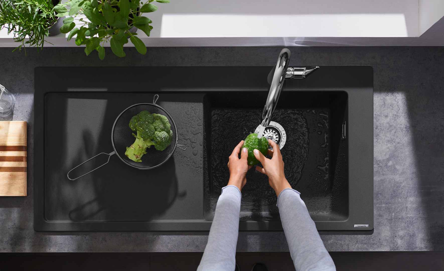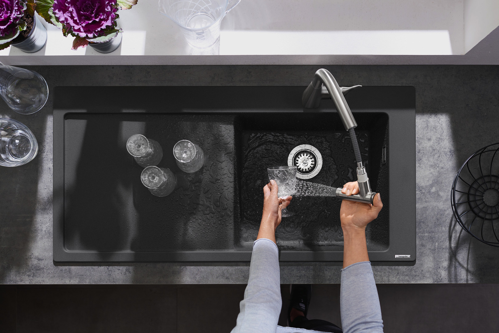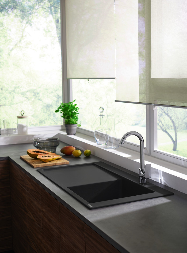 hansgrohe Einbauspüle 450 S514-F450 1030x490mm, 1 Hauptbecken rechts, Abtropffläche links, steingrau