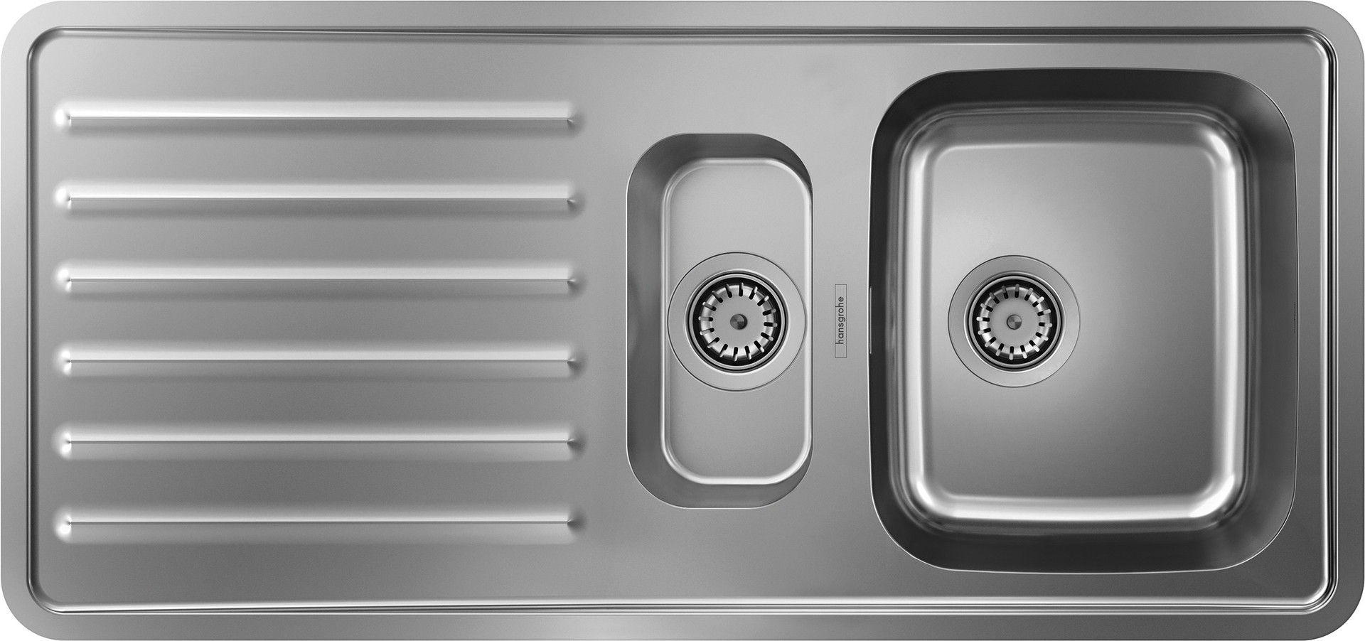 hansgrohe Einbauspüle S4111-F540 340/150/400 1055x485mm, mit Abtropffläche, manuelle Ablaufgarnitur, Edelstahl