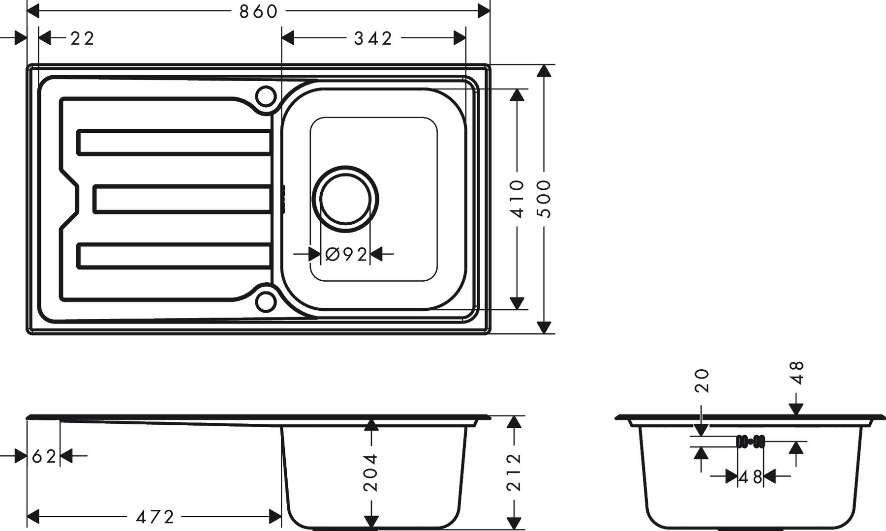 hansgrohe Einbauspüle S44 mit Abtropffläche, 840 x 480 mm, Edelstahl
