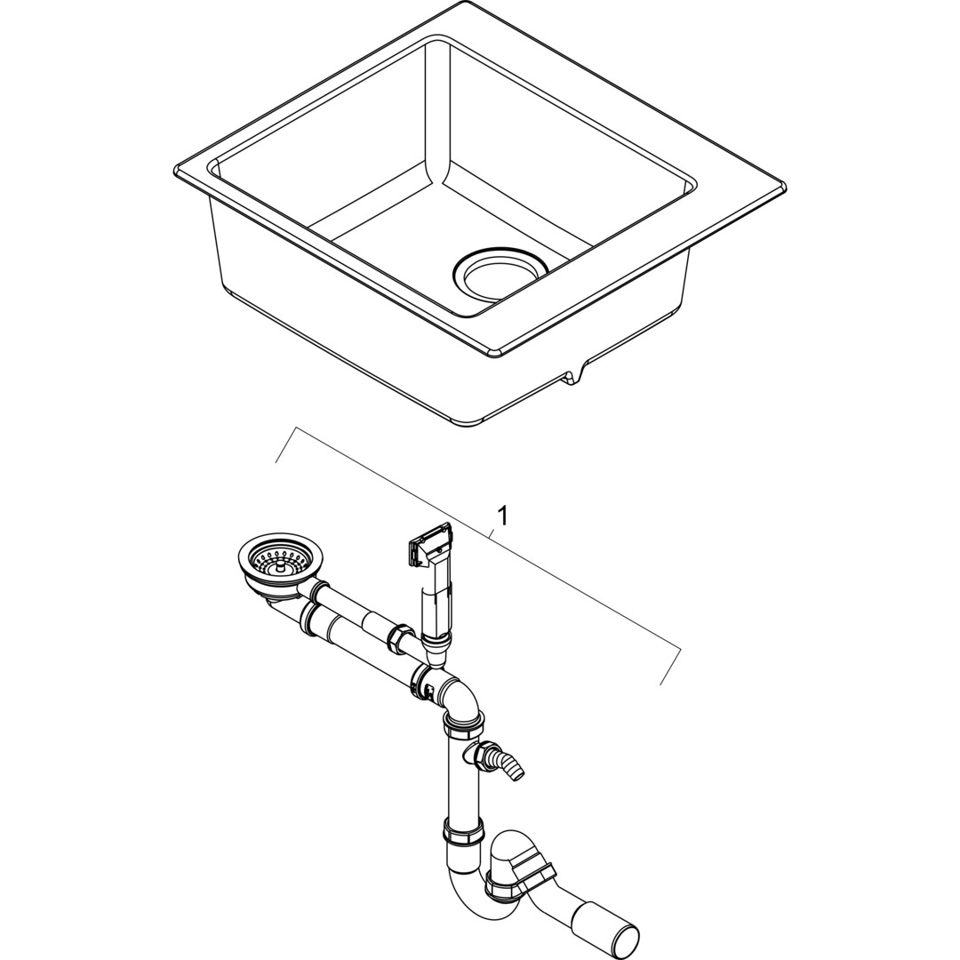 manuelle Ablaufgarnitur, mit Siphon, Abtropfgitter, 1 Hauptbecken, ohne Hahnloch, Einbauart: flächenbündig, Position Überlauf: hinten mittig im Becken
